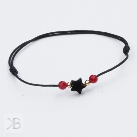 Delikatna bransoletka z gwiazdką z naturalnego czarnego onyksu, koralami naturalnymi i pozłacanym srebrem próby 925